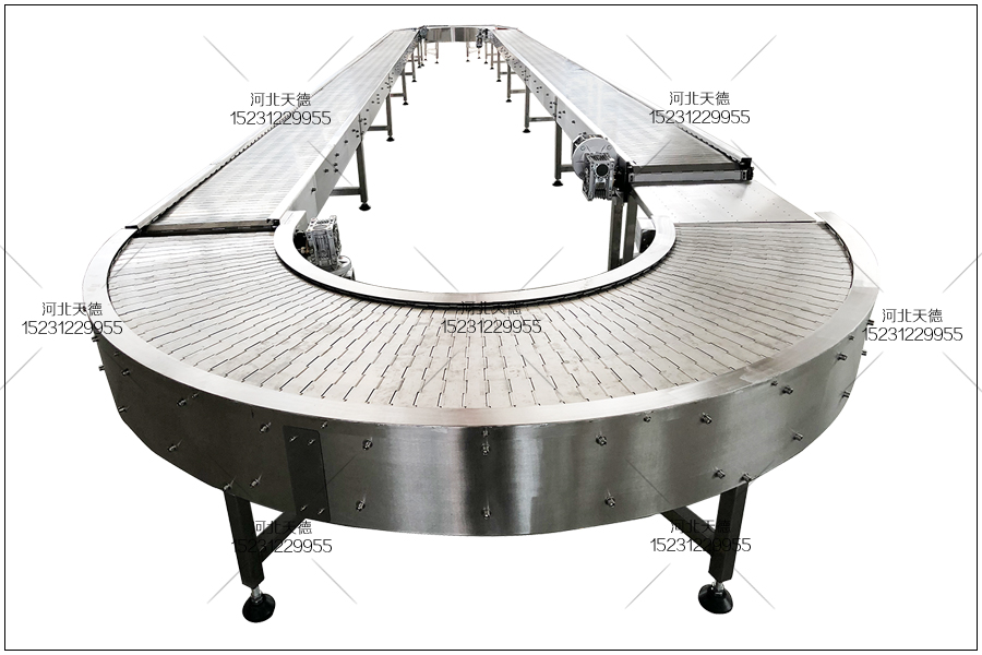 這臺設(shè)備是北京的客戶定制的,這臺鏈板輸送機流水線是由4臺鏈板輸送機組合安裝成的,有兩臺180度轉(zhuǎn)彎機和兩條平面輸送鏈板輸送機組裝成的,整臺設(shè)備長度為12米,寬度為800毫米,采用了2.5毫米后的鋼板轉(zhuǎn)彎成機身作為機架使用,采用板厚1.5毫米厚的鏈板作為輸送鏈板來輸送物品。整臺機器采用螺絲進行拼接安裝成,可以方便的拆卸,運輸也十分的方便。